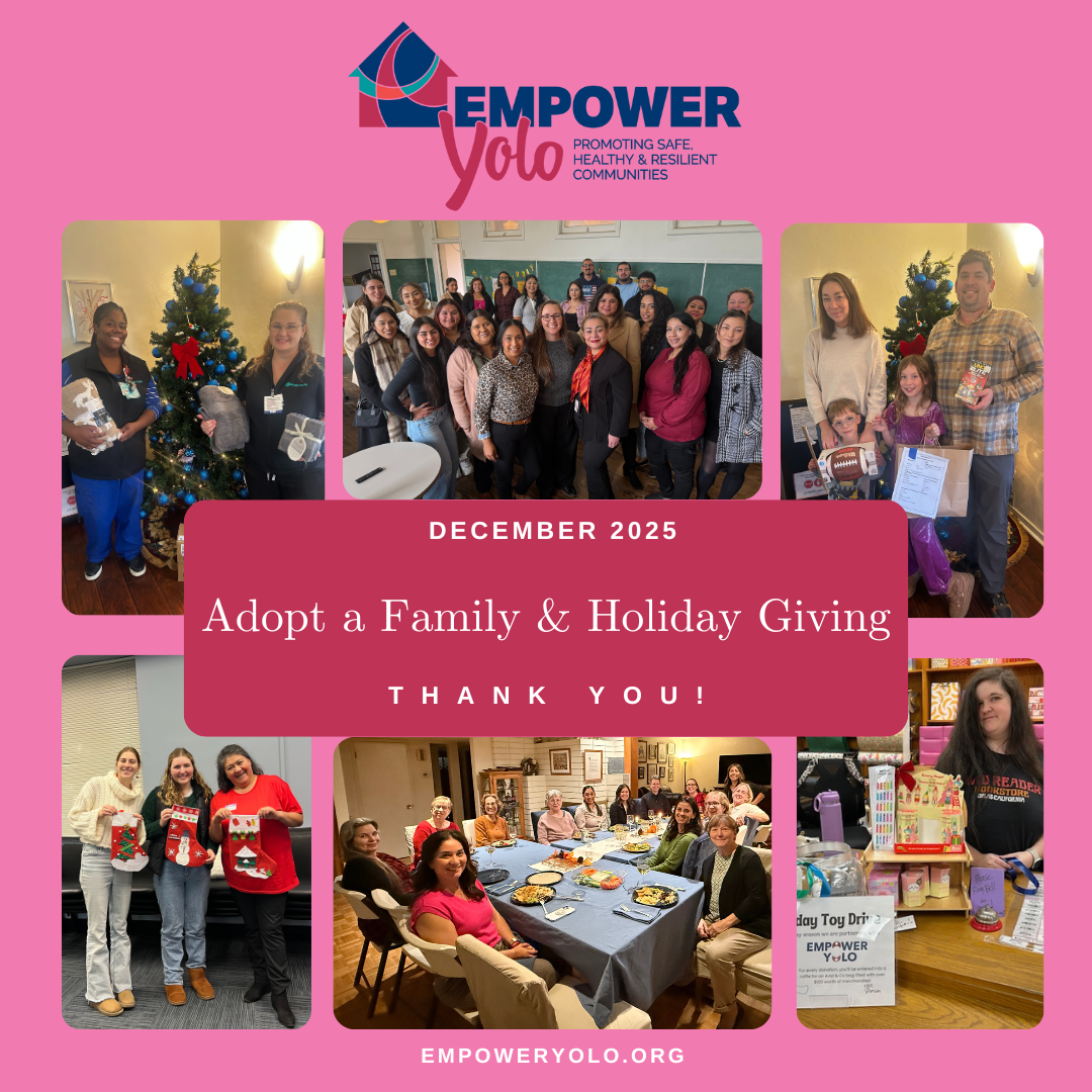 We are so grateful to everyone who contributed to Empower Yolo’s Adopt a Family & Holiday Giving program. Because of you, families in our community felt supported and cared for during the holiday season. Thank you for making such a meaningful difference.