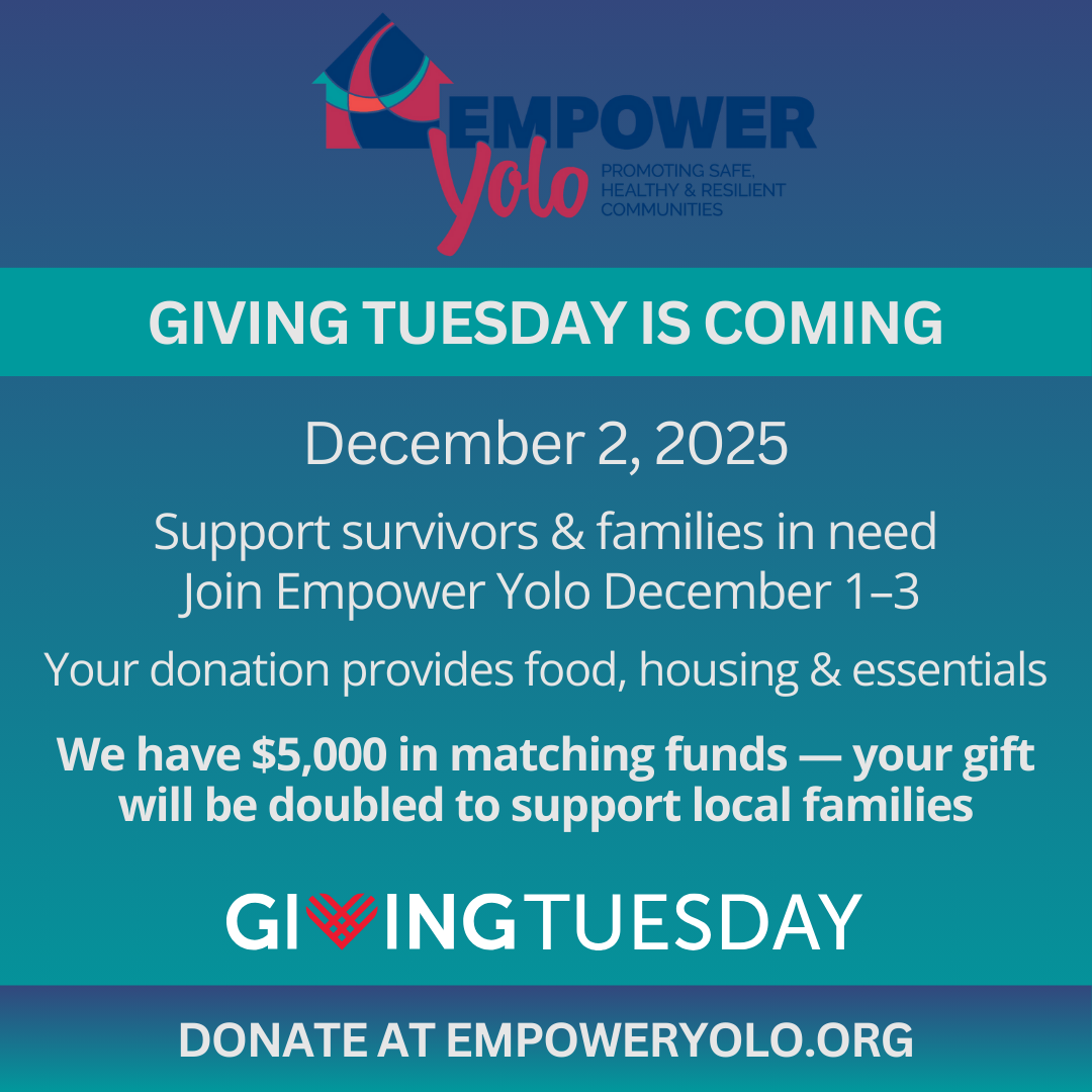 From December 1–3, your donation to Empower Yolo will support survivors and families struggling with food insecurity, housing instability, and basic necessities.