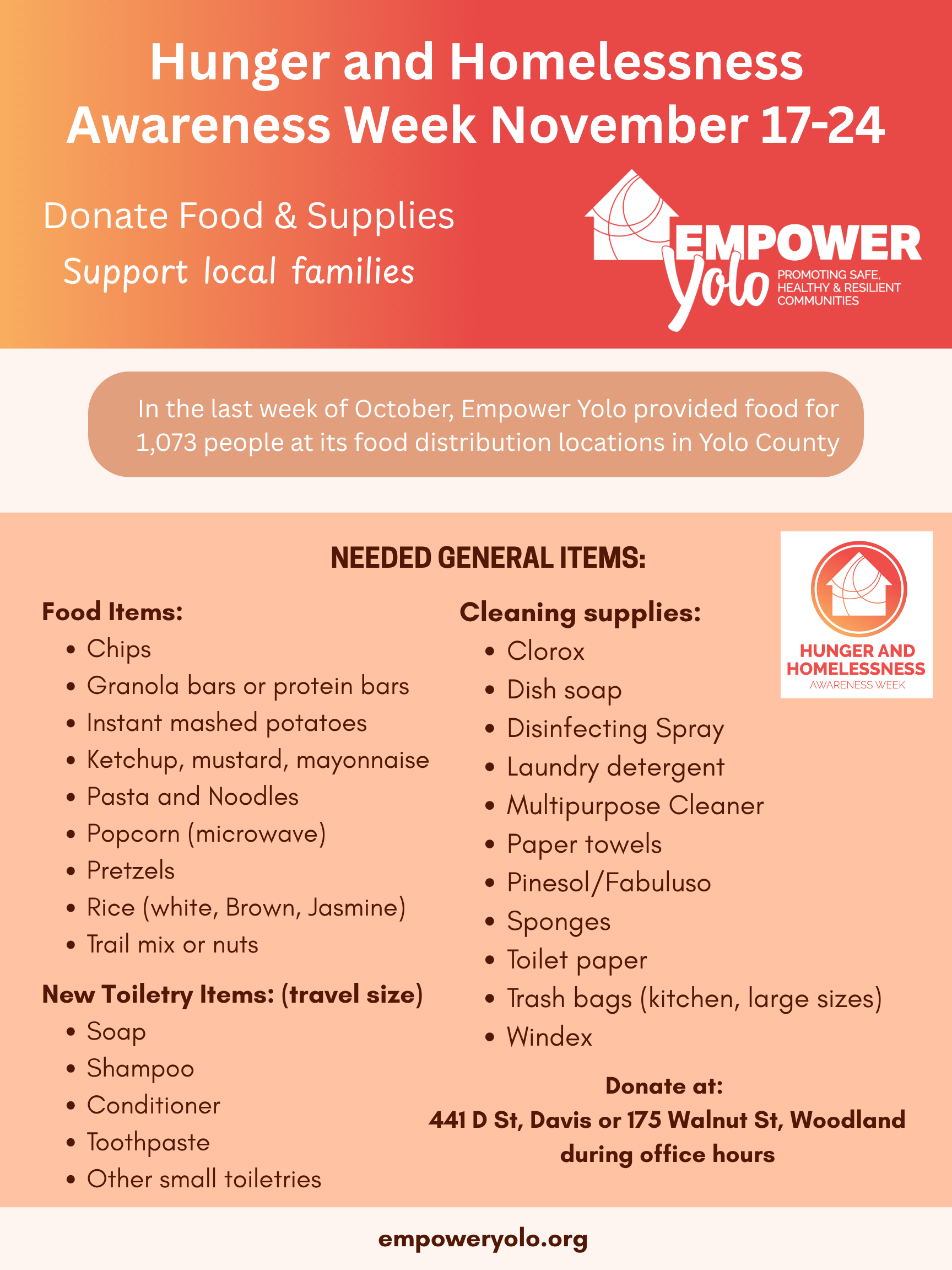 Empower Yolo Observes Hunger and Homelessness Awareness Week: November 17-24