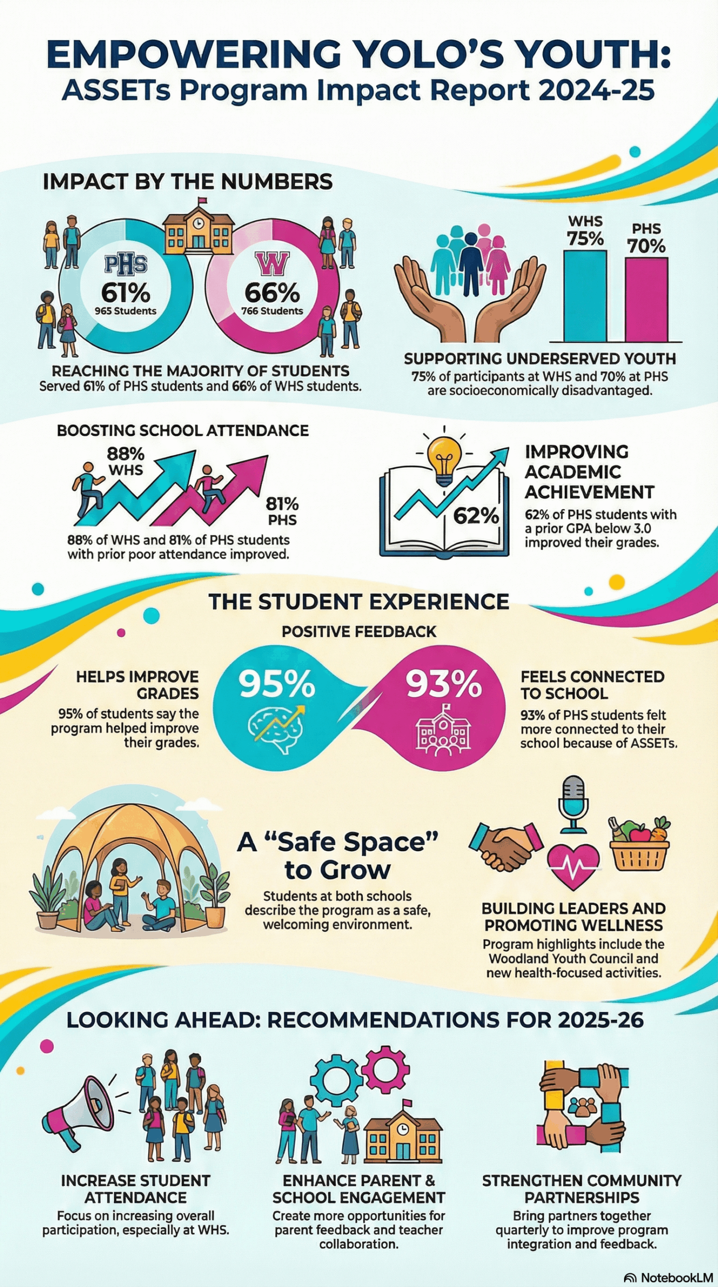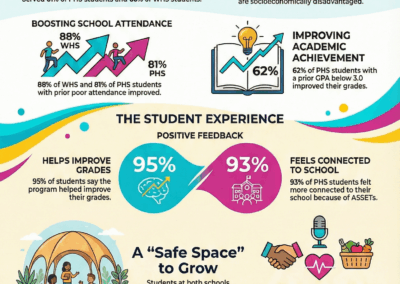 Overall, ASSETs exists to establish or expand before- and after-school programs that help disadvantaged 9th–12th grade students succeed academically, socially, and emotionally through safe, well-structured, and engaging programming.